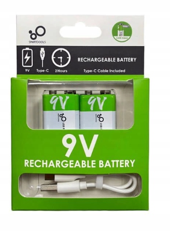 2x Bateria akumulator SMARTOOOLS 9V 650mAH USB-C + kabel do ładowania