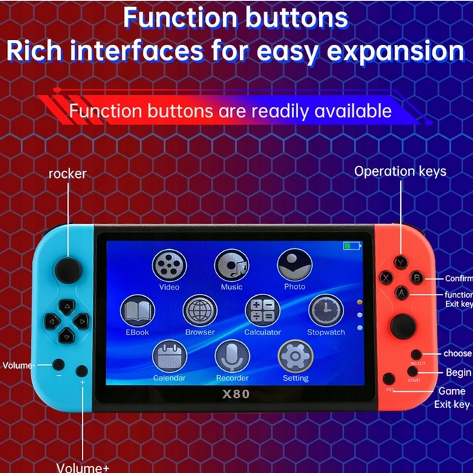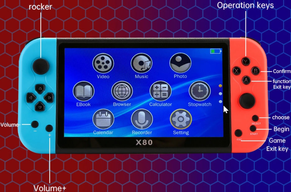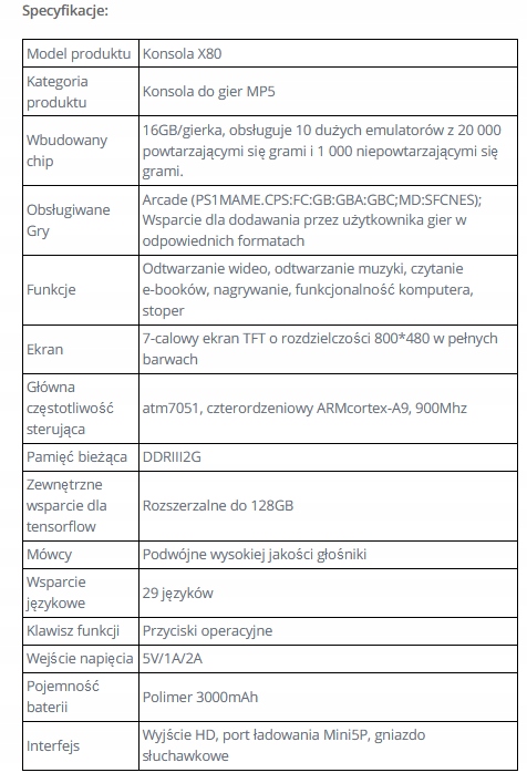 Konsola Retro X80 wyświetlacz 7 cali 800×480 20000 Gier słuchawki gratis