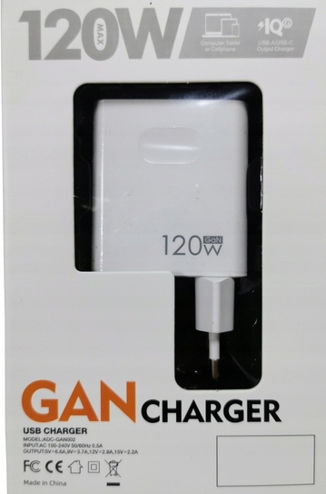 Ładowarka USB 120W PD szybkie ładowanie 5,9,12,15V Gan Charger+ 2 kable USB