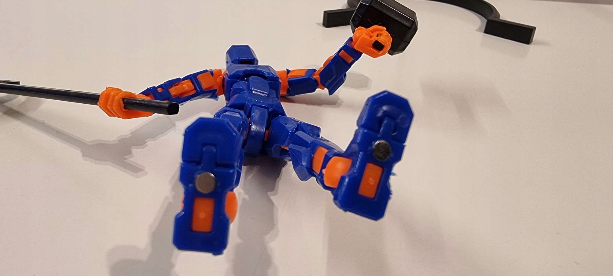 Figurka z nowej wersji V3, w stopach zamontowane małe magnesiki. Bardzo fajna opcja, można ludzika dowolnie formować na metalowej płaszczyznie. Dzięki temu możemy ludzika powyginać w niedorzeczne pozycje i nadal będzie stał. W poprzednich wersjach ciężko było postawić żeby się nie przewróciła