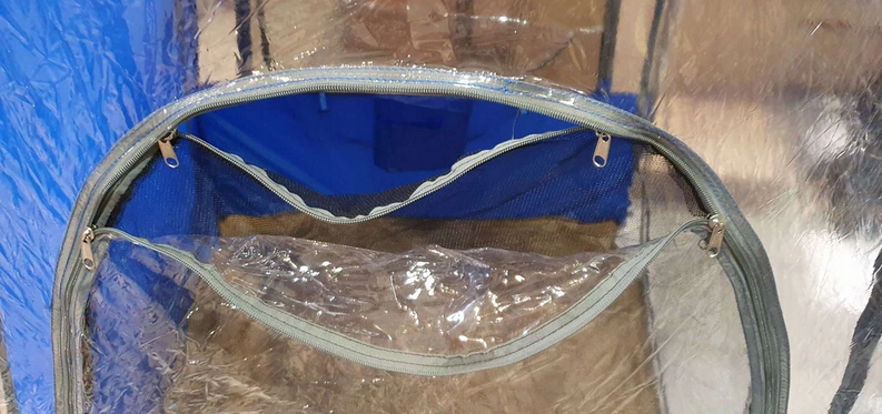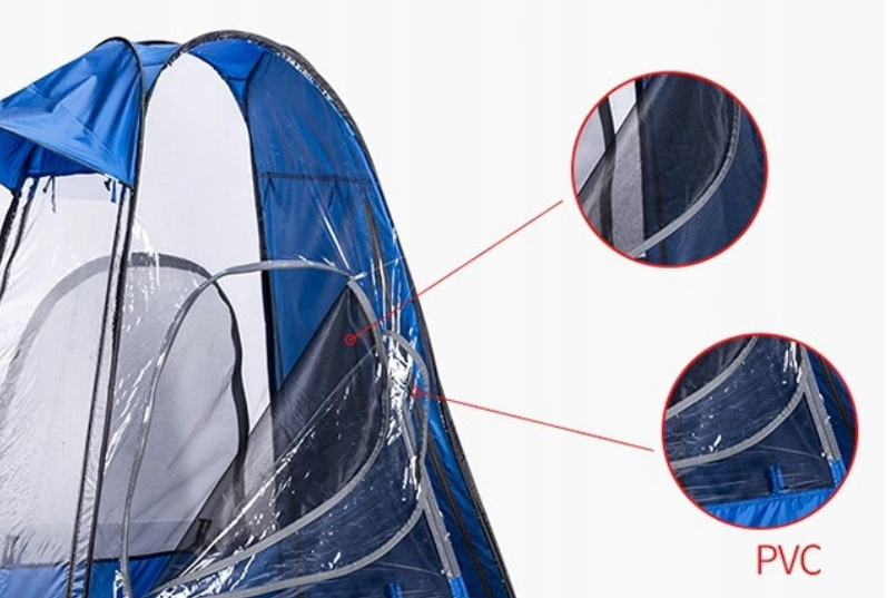 Okna, z przezroczystej foli, odpornej na UV, zapinane na suwak, również moskitiery na suwak.
