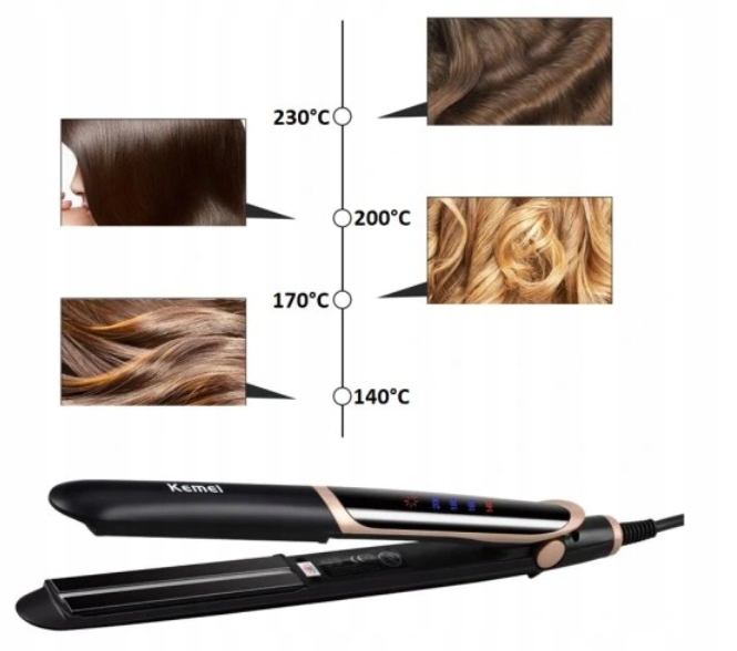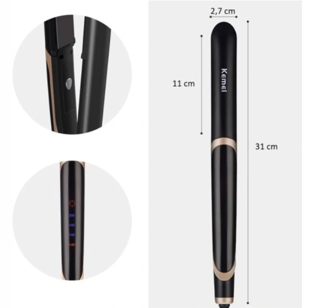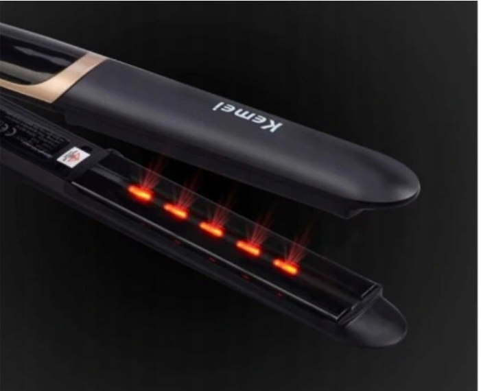 Prostownica KEMEI KM-2219 to nowoczesne urządzenie, dzięki któremu osiągniesz efekt prostych i lśniących włosów oraz zadbasz o ich odpowiednią kondycję. Dzięki technologii podczerwieni, która regerenuje i odżywia strukturę włosa oraz regulacji temperatury widocznej na wyświetlaczu, możesz sama zapewnić swojej fryzurze profesjonalną pięlegnację niczym w salonie. Płytki podgrzewające pokryte są specjalną ceramiczną powłoką wysokiej jakości, dzięki której nie uszkodzisz swoich włosów, a efekt prostowania będzie utrzymywał się długo po pielęgnacji.